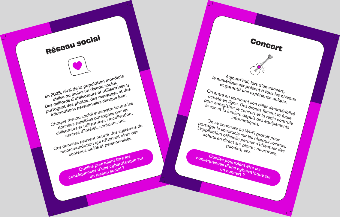 À travers le jeu, les élèves travaillent en groupe pour découvrir à quoi sert la cybersécurité sur une situation spécifique et se former aux enjeux sociaux et environnementaux soulevés par ce domaine.