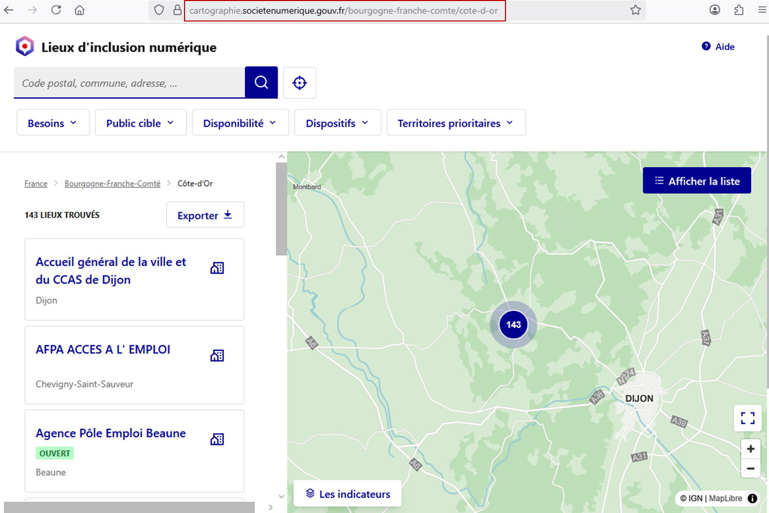 Ex : Récupération du lien du Département de la Côte-d'Or