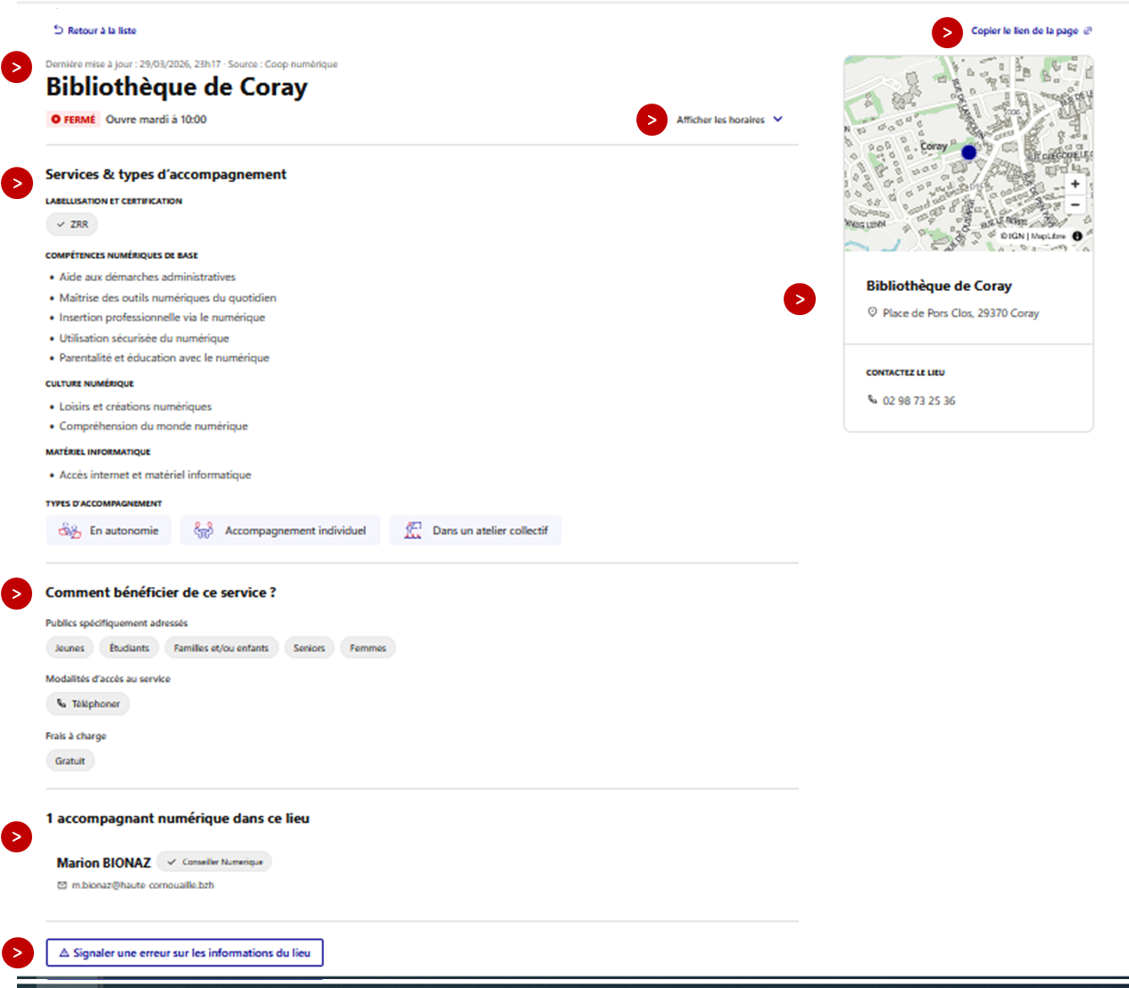 Si l'erreur concerne votre structure ou vos coordonnées, corrigez la fiche à l'aide du tutoriel : Mettre à jour un lieu d'inclusion numérique