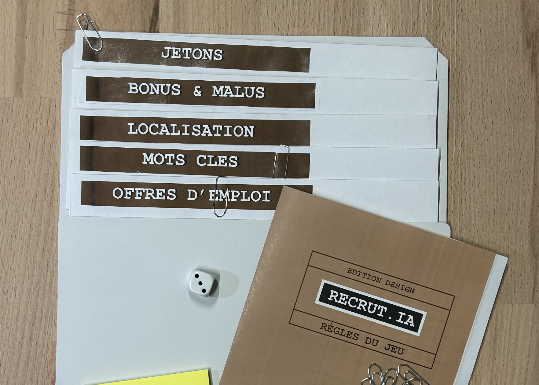 Un outil de médiation pour comprendre les mécanismes de recrutement automatisées par l’IA. Inspiré du bingo, ce jeu met en scène l’évaluation algorithmique des profils. Les participant.es gagnent ou perdent des points selon l’offre d’emploi, leur compétences et quelques bonus, malus tirés aléatoirement.