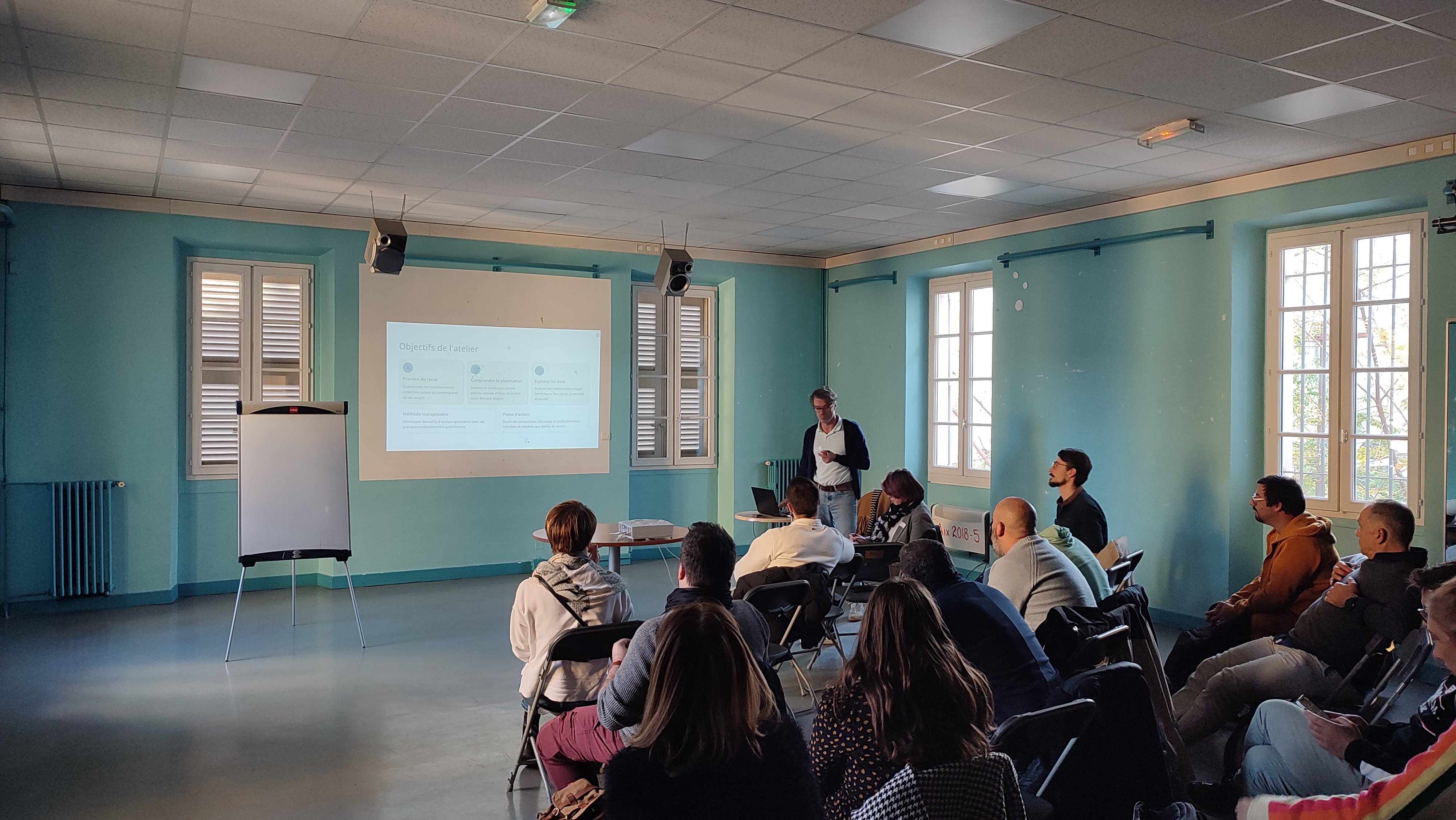 Thème de l'atelier : Le numérique, bouc émissaire d'une société en manque de lien ? Intervenant : Julien Podevin, responsable pédagogique santé à La Bulle, laboratoire d'arts numériques