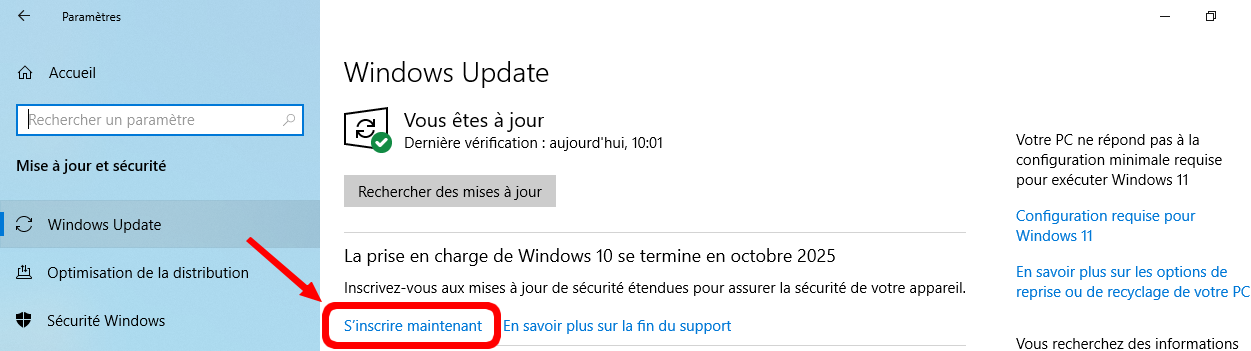 Windows 10 - S’inscrire aux mises à jour de sécurité étendue